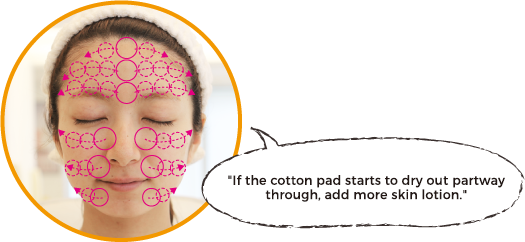 Sliding the cotton may cause friction and burden the skin. Pressing slowly for 3 seconds allows penetration into the stratum corneum.