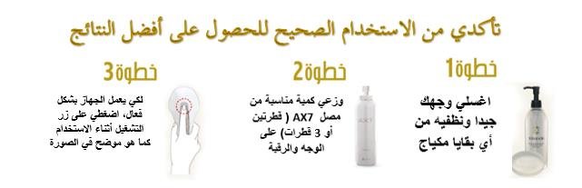 - وزعي كمية مناسبة من مصل A7 ( قطرتين أو 3 قطرات على الوجه والرقبة.