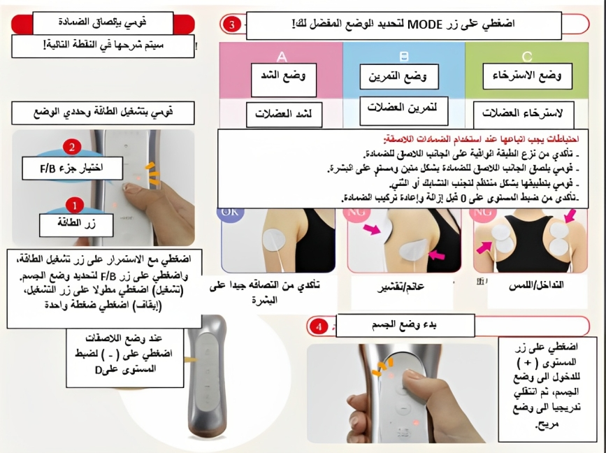 (تشغيل) اضغطي مطولا على زر التشغيل، إيقاف) اضغطي ضغطة واحدة