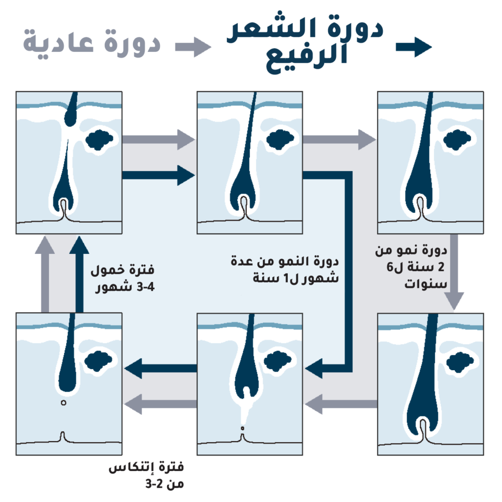 - ييخترق فروة الرأس ويعمل على جذور الشعر.