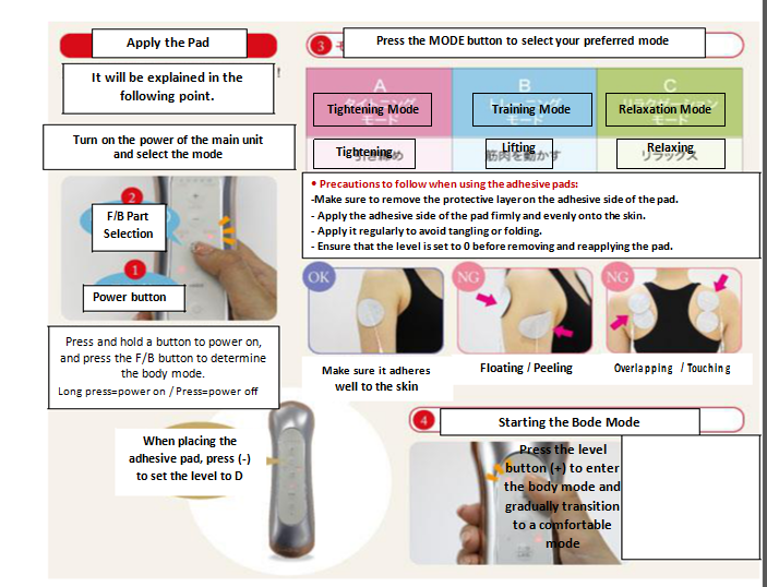 Before starting the body care, clean your skin if there is any oil, sweat, or dust on the surface to avoid damage to the pads and to ensure proper adhesion.