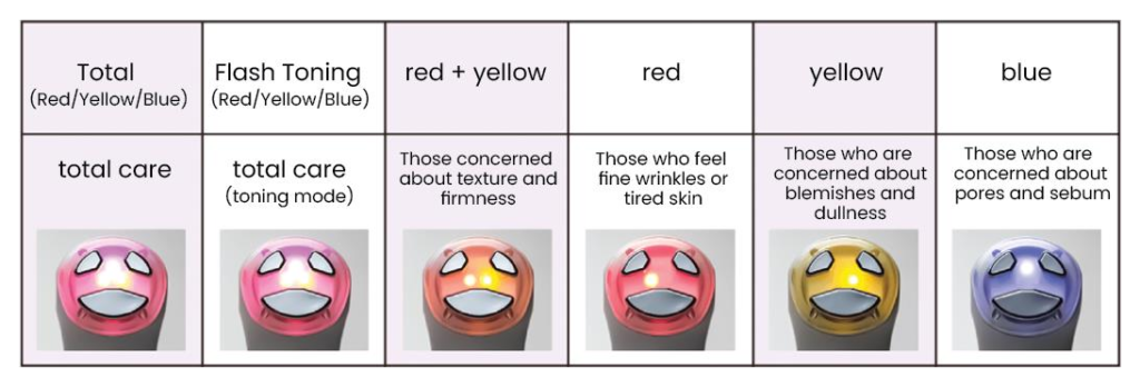 Supports skin renewal using red, yellow, and blue light: (for the face only)