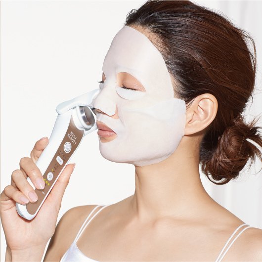 The cleansing solution removes dead skin cells, dust, and impurities from the surface of the skin, and also attracts positively charged impurities from inside the pores using the negative electrical charge of the device. This works in the same principle as a vacuum cleaner that sucks dust from the floor!